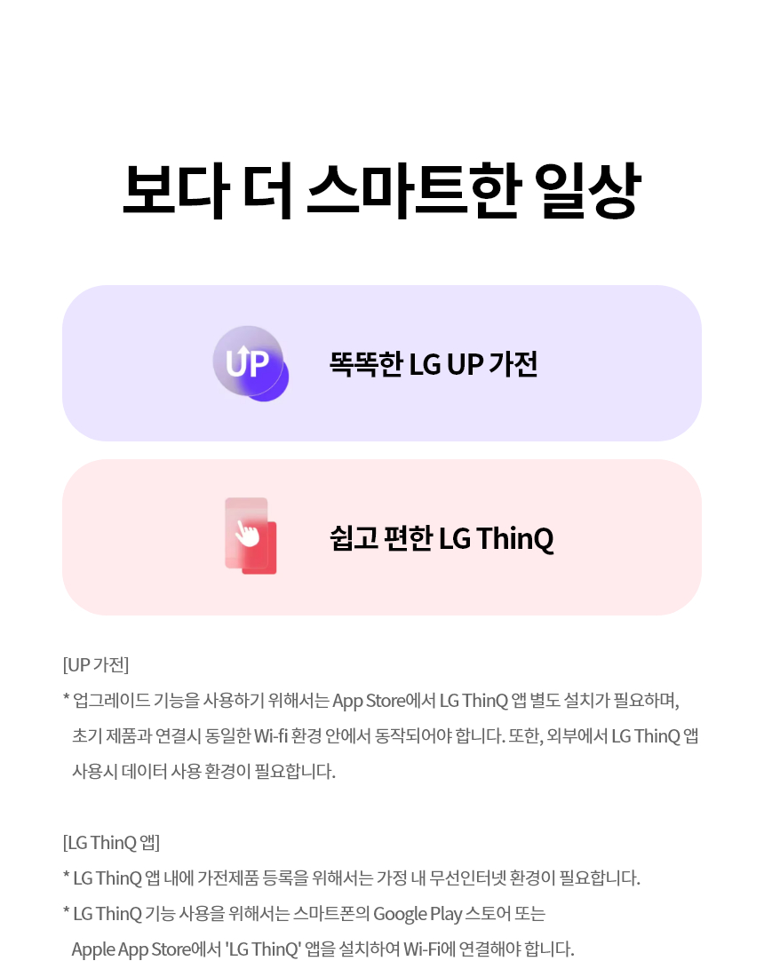 ※ 총 계약기간 동안 상품의 소유권은 'LG전자'에게 있습니다.※ 분실료 기준 : 상품 판매가-{(상품판매가÷72개월)x사용개월수}, 파손의 경우 분실료의 50%※ 의무 사용기간 내에 해지 시 위약금 등 비용이 발생할 수 있으며 의무 사용기간이 경과하였더라도, 계약기간 이내에 해지할 경우 철거료 등 부대비용이 일부 발생할 수 있습니다.※ 구독 총요금/일시불 비용은 신청 상담을 통해 확인하실 수 있습니다.