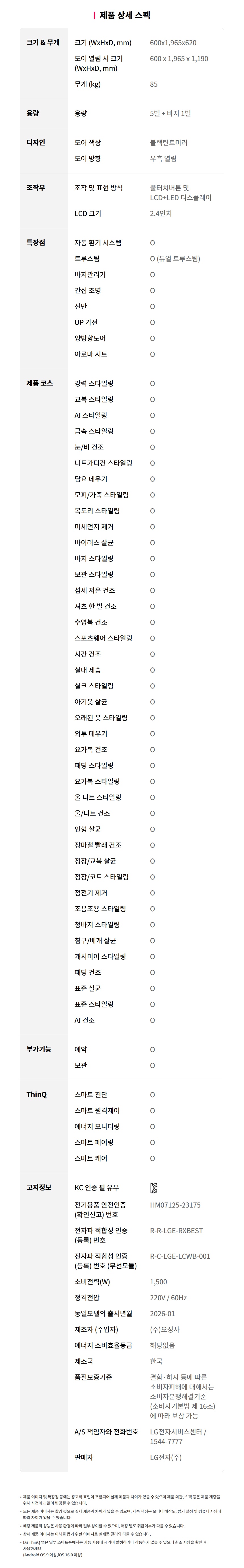 [가전구독/렌탈] LG 스타일러 오브제컬렉션 5벌 SC5GMR60S(블랙틴트미러)